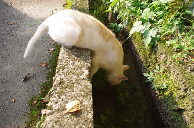上手く用水に落ちないように体をのばして
