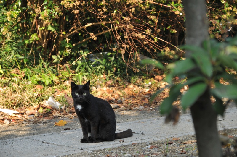 よく見ると黒猫(ぬこ)なんだけど、胸に白い毛があります。