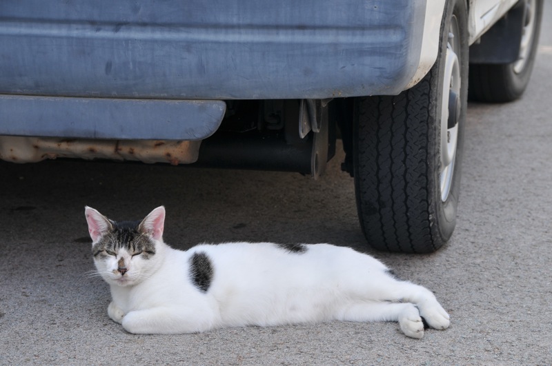 車の下が涼しいのか、猫(ぬこ)ちゃんのんびりしています。