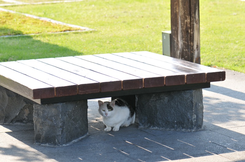 公園のベンチの下で猫(ぬこ)ちゃんが