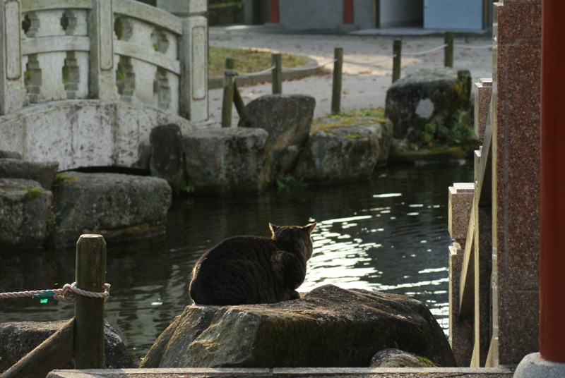 猫(ぬこ)ちゃん、池をずっと見つめています。