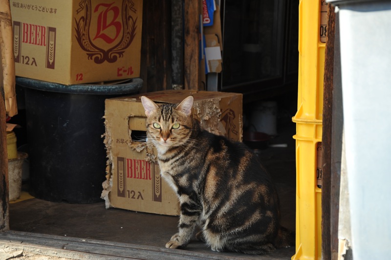 猫(ぬこ)ちゃんが座っている奥に段ボールの箱が。