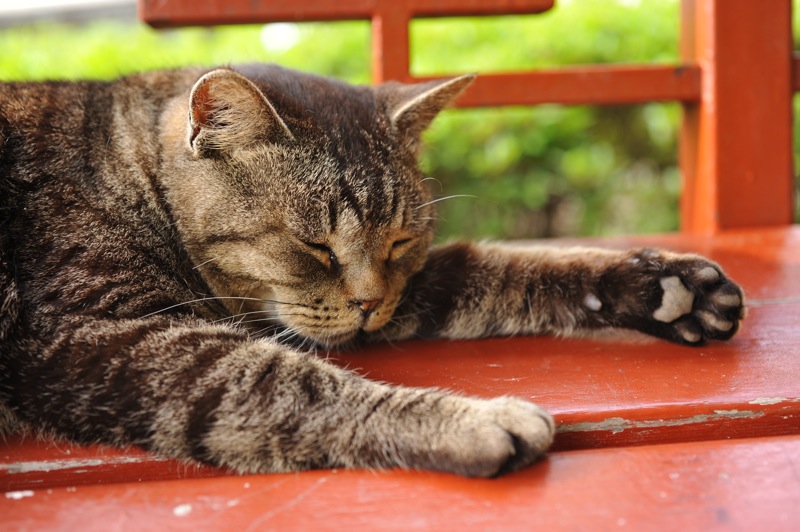 ベンチの上で気持ち良さそうに昼寝をしていました。