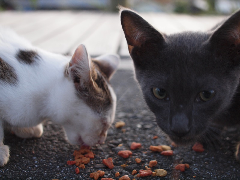 白い毛がある方の子猫(ぬこ)はかなり痩せてますね。