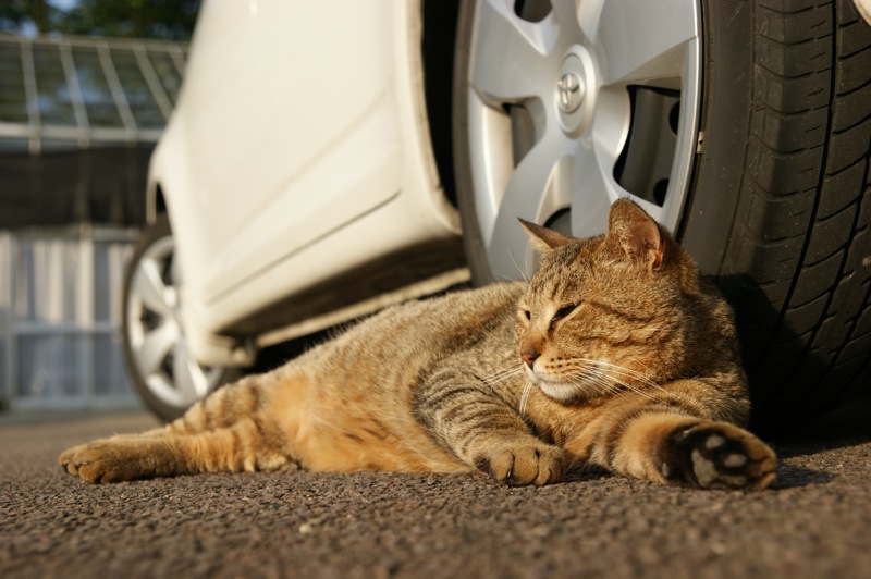 ボンネットや車の下で昼寝をしてることがよくあります。