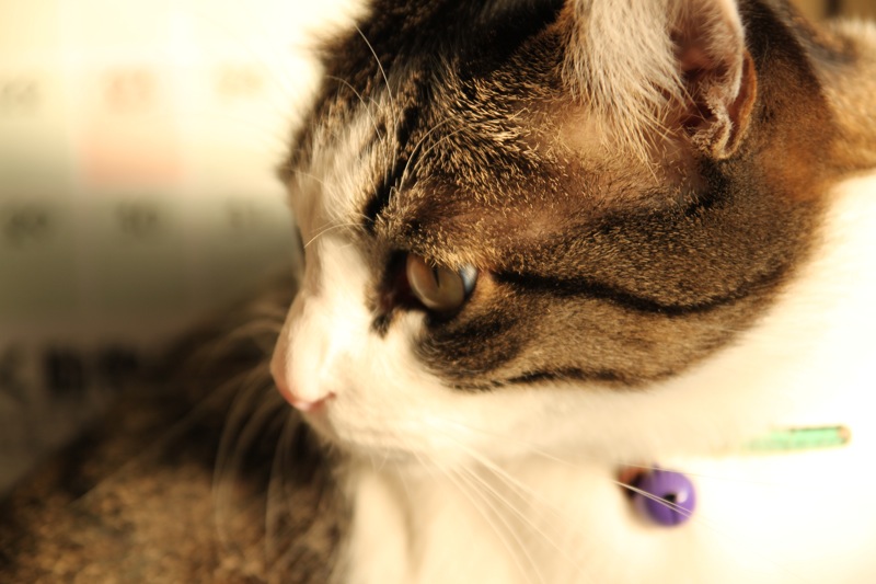 猫(ぬこ)のチビにカメラを近づけて撮影。
