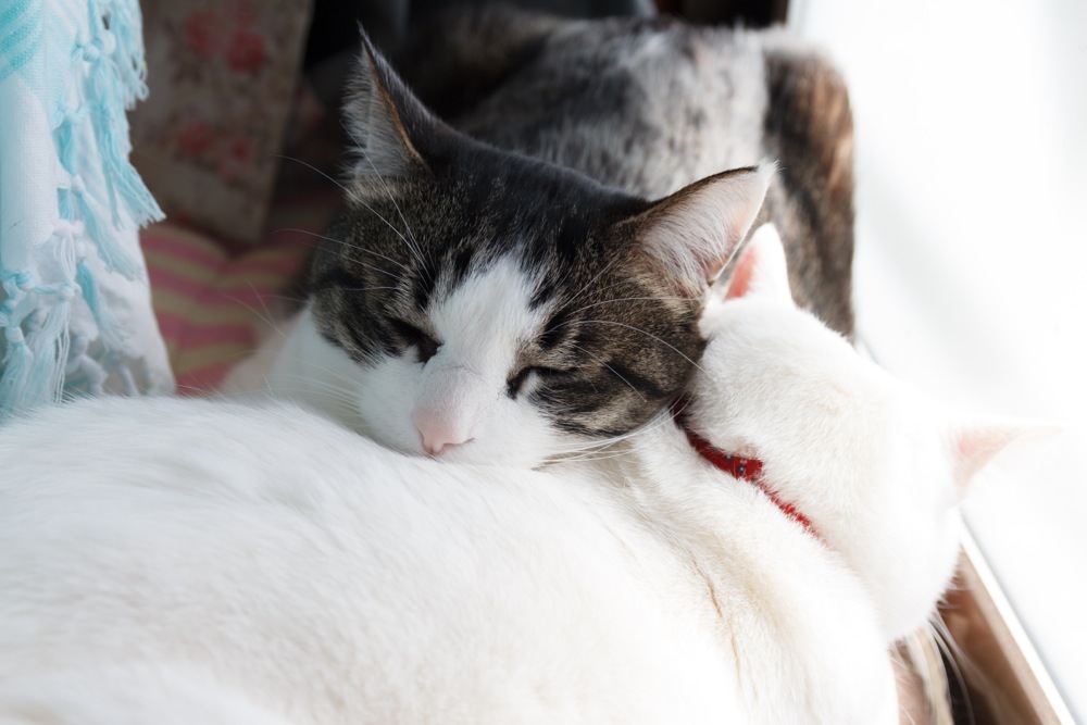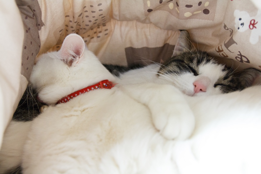 どちらかの体をまくらにして寝ていますが、