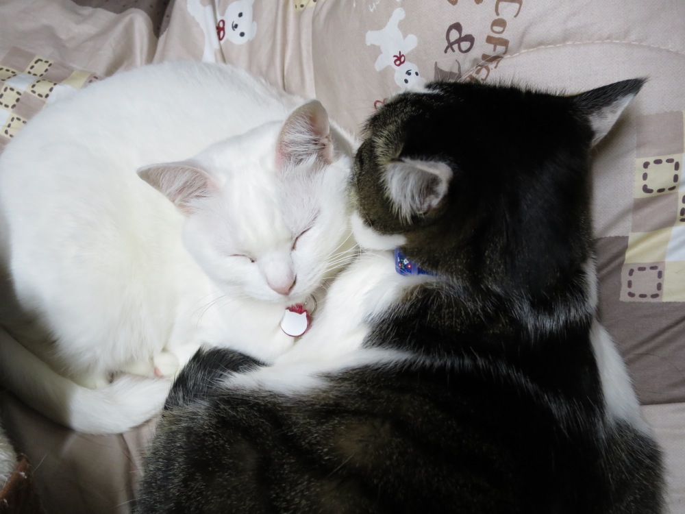 お互い暖かいのを知ってるのか、くっ付いて寝てることが多いです。
