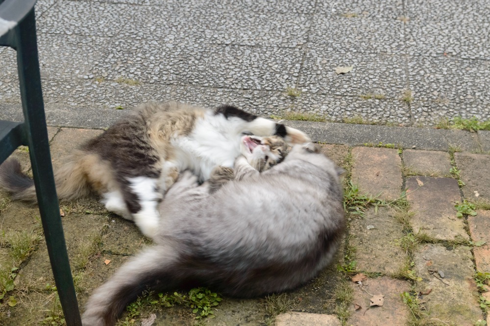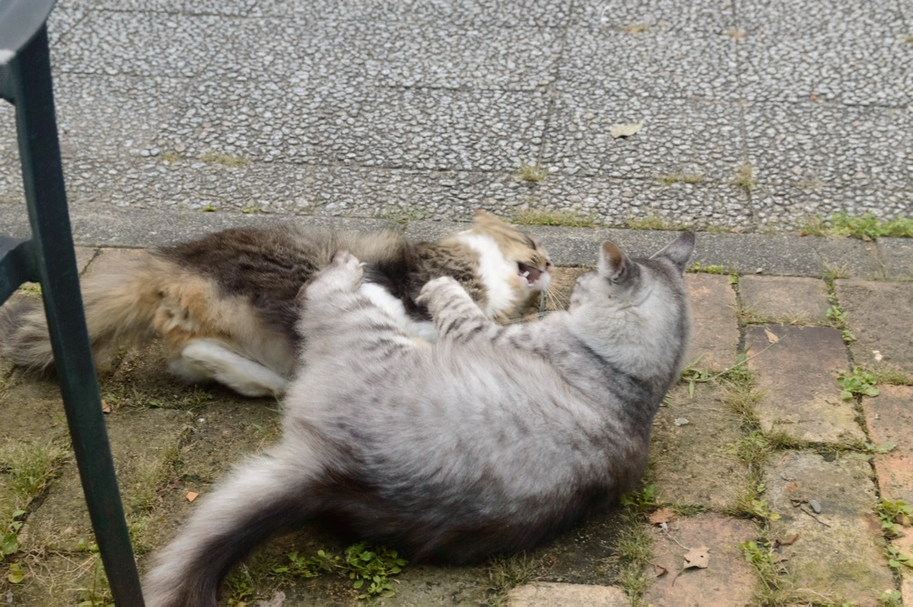 うちの猫(ぬこ)のシロと猫(ぬこ)のチビもよく遊びのケンカをしています。