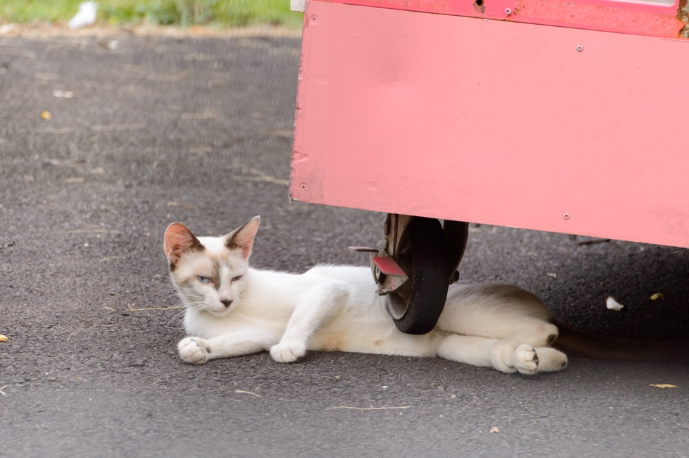 暑い日だったため、車輪が冷たくて気持ちがいいのか