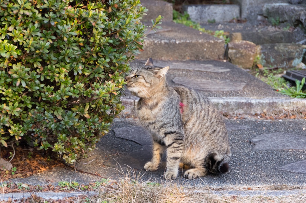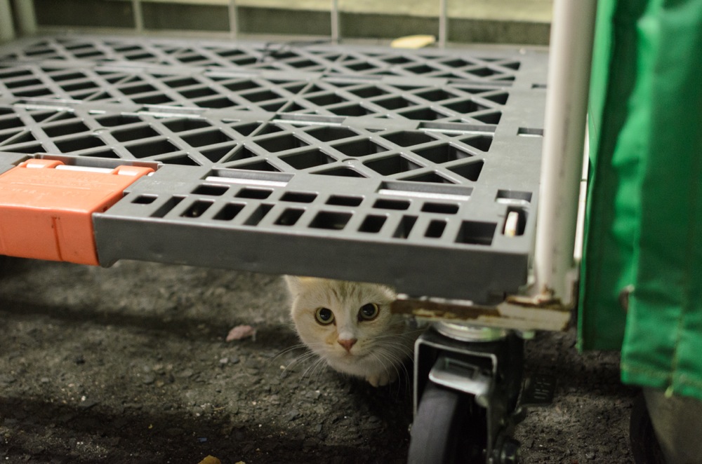 声のする方を見るとかわいい猫(ぬこ)が物陰にいました。