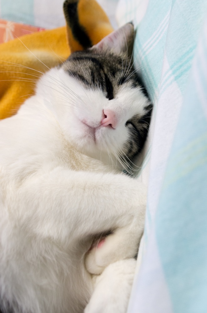 先にチビを寝させてから、シロを近づけると一緒に寝ているところが見られますね。