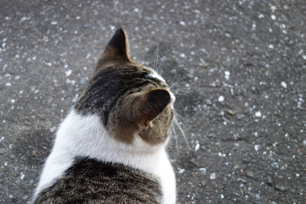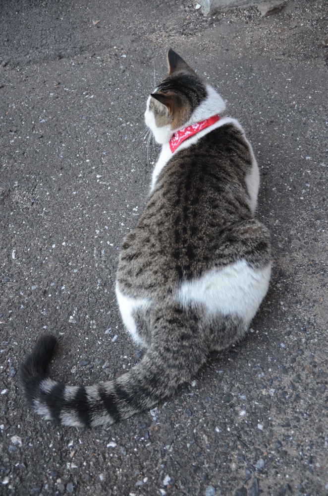 駐車場の猫(ぬこ)は男の子なのですが、赤い首輪も似合っています。