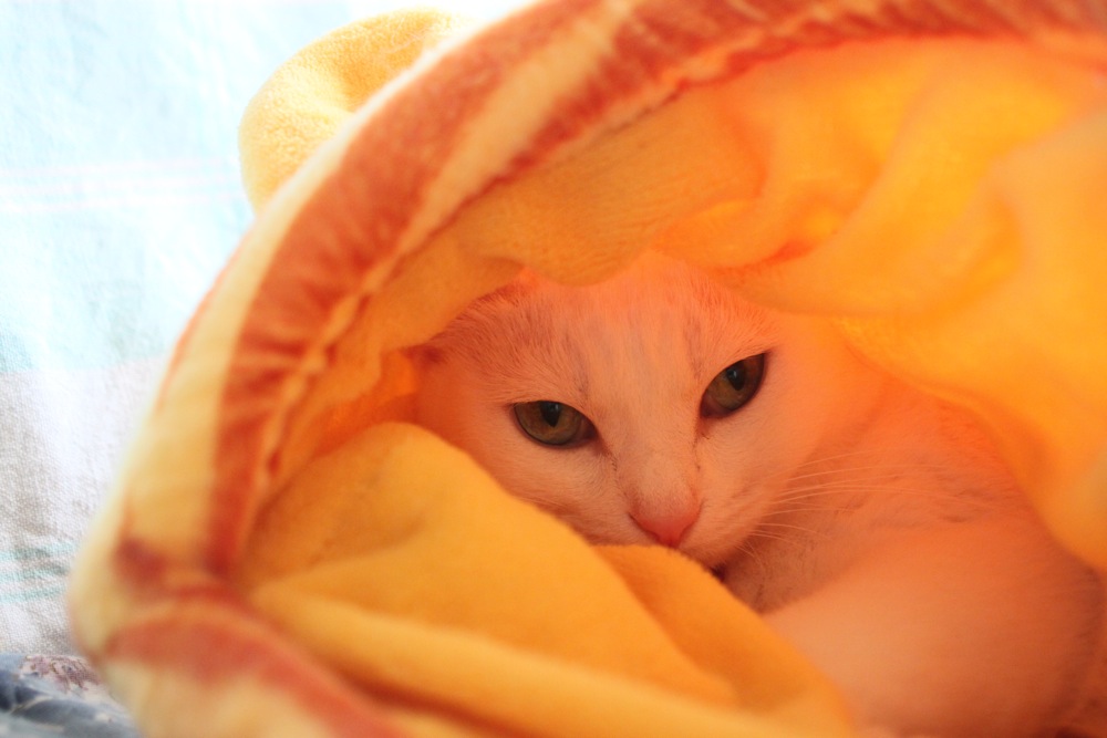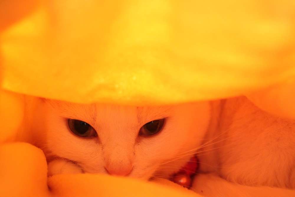 猫(ぬこ)のシロは他の猫と同じく箱や袋の中に入るのが好きです。