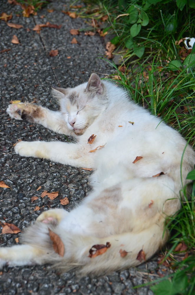 落ち葉の上で昼寝をしている猫(ぬこ)を何度か見たことがあります。