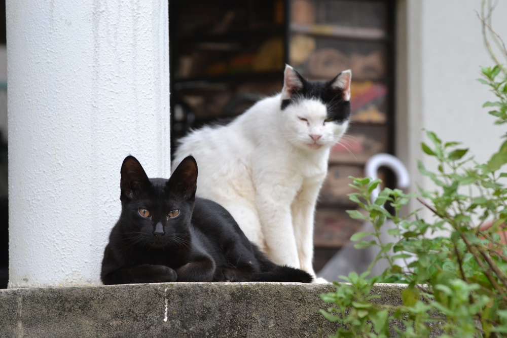 画像に写ってる大人猫(ぬこ)と子猫の黒猫が一緒にいることが多いようで