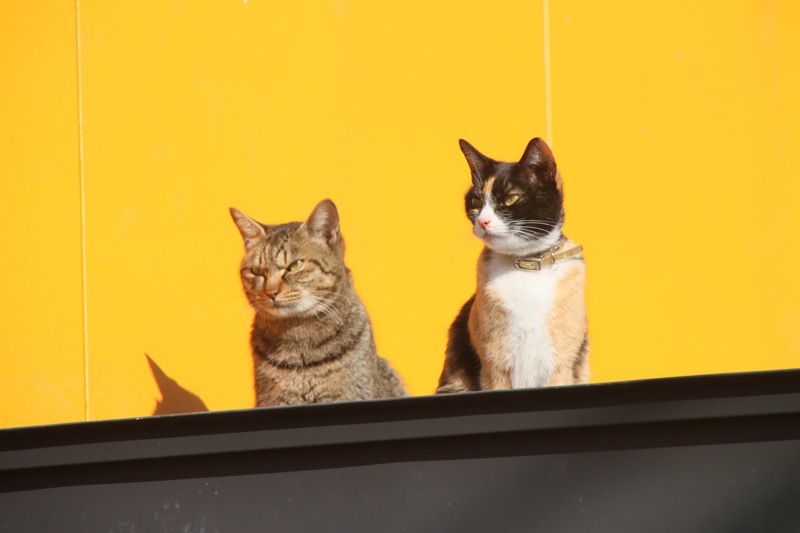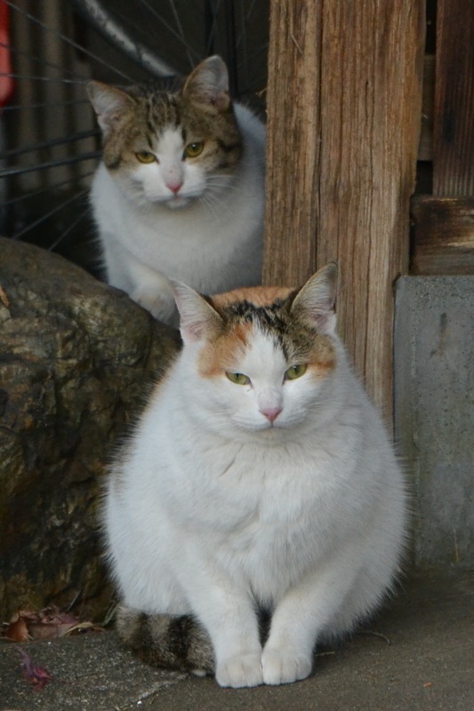 2匹ともたくさんご飯をもらっているのかまん丸です。