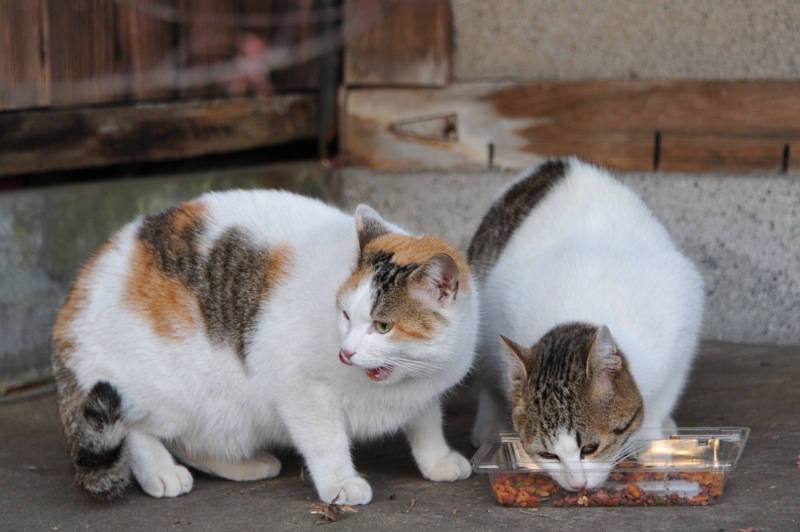 今回は子ども猫がお母さん猫と一緒にご飯を食べていました。