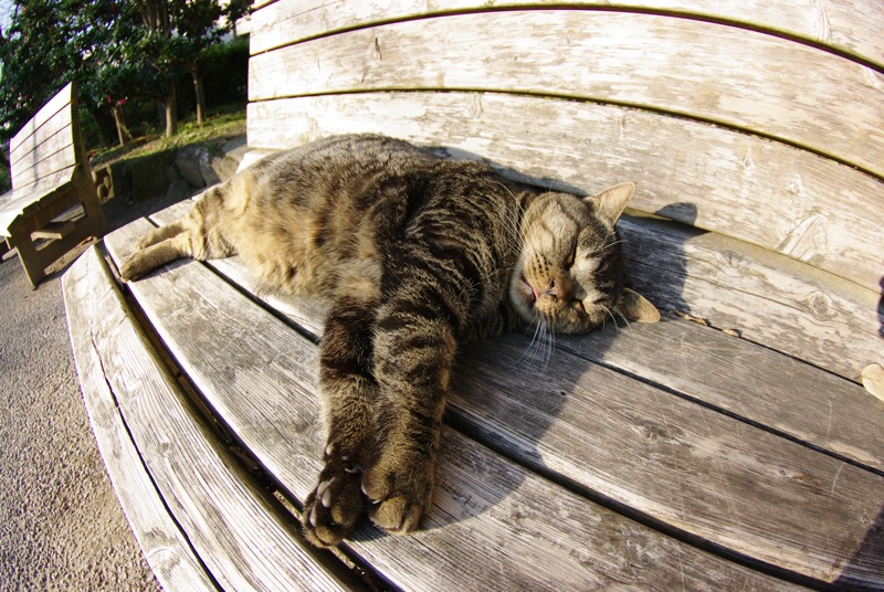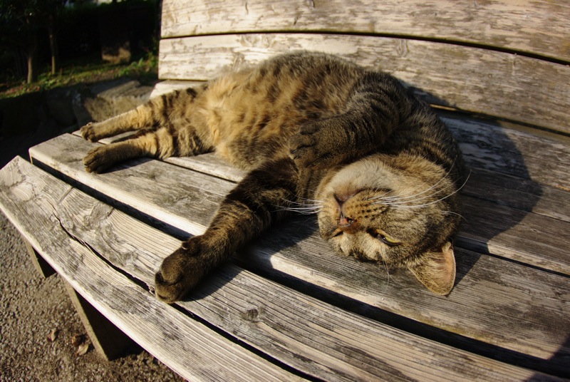 猫(ぬこ)ちゃんもベンチの上が暖かいのを知ってて