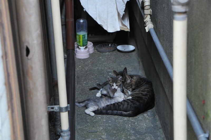 シャッターの音に驚いて子猫(ぬこ)たちは