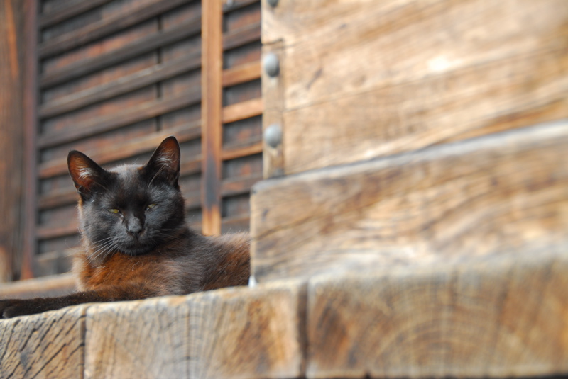もう1匹の黒猫と交替でお賽銭箱の見張り番をしているのですね(笑)