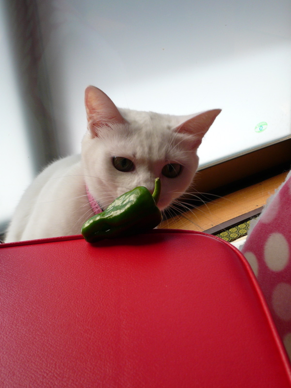 この時は、光の加減で黄色と緑の目になって光ってました。