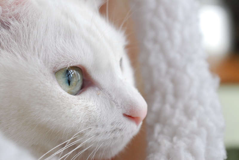 シロはオッドアイではなく、左右の目は同じ色なのですが、