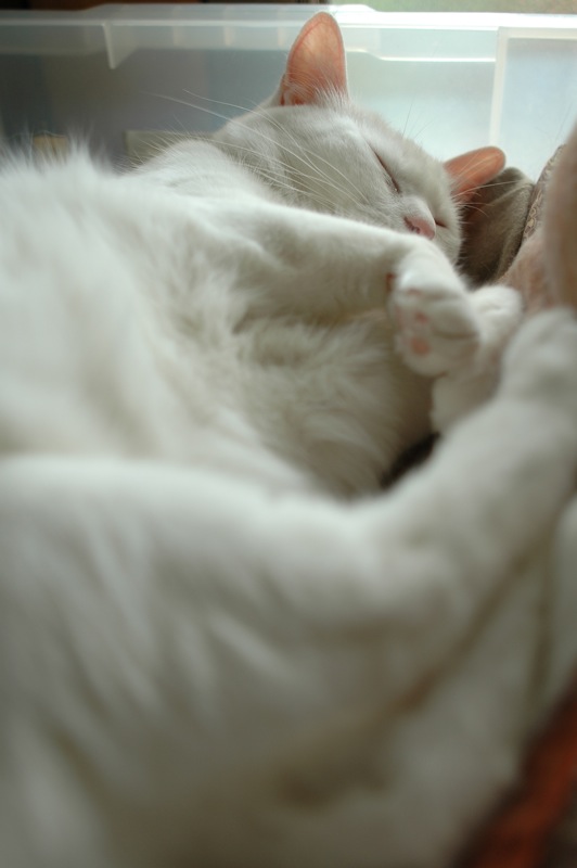 この時は猫(ぬこ)のシロが箱の中で昼寝をしていました。