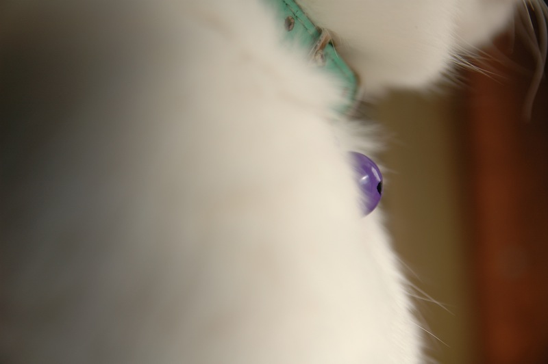 ずっと前にペットショップで目立つ色の紫を買って来て付けていますが