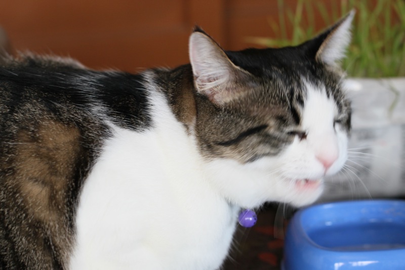 猫(ぬこ)のチビが水を飲んでいました。