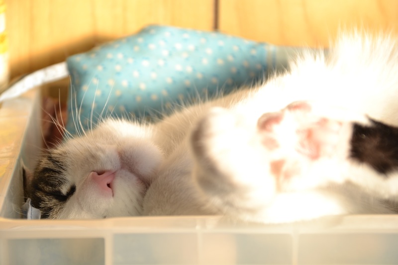 猫(ぬこ)のシロは肉球やシッポを触ると噛み付いてきたり